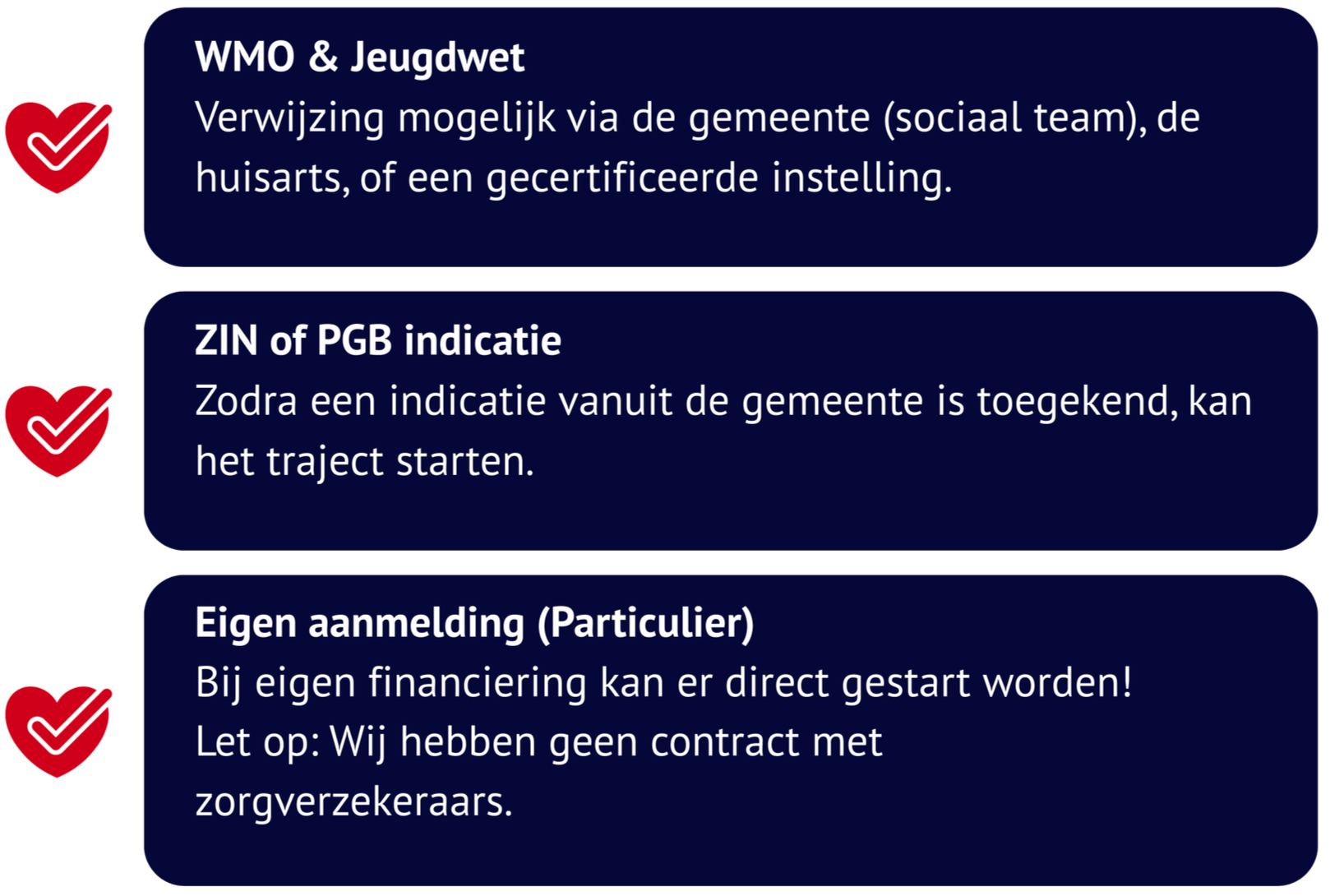 Wij werken aanvullend waar reguliere trajecten stagneren of onvoldoende effect genereren. Wij denken in oplossingen, niet in etiketten.